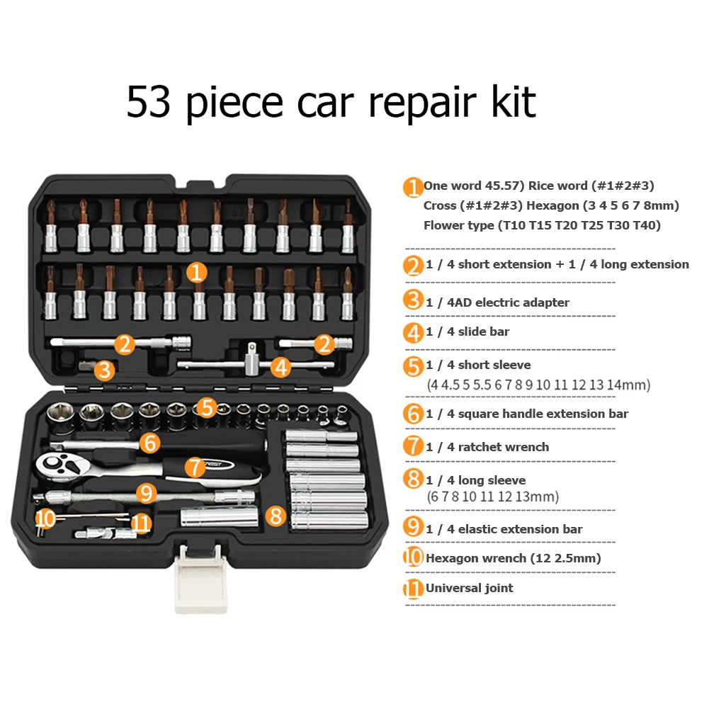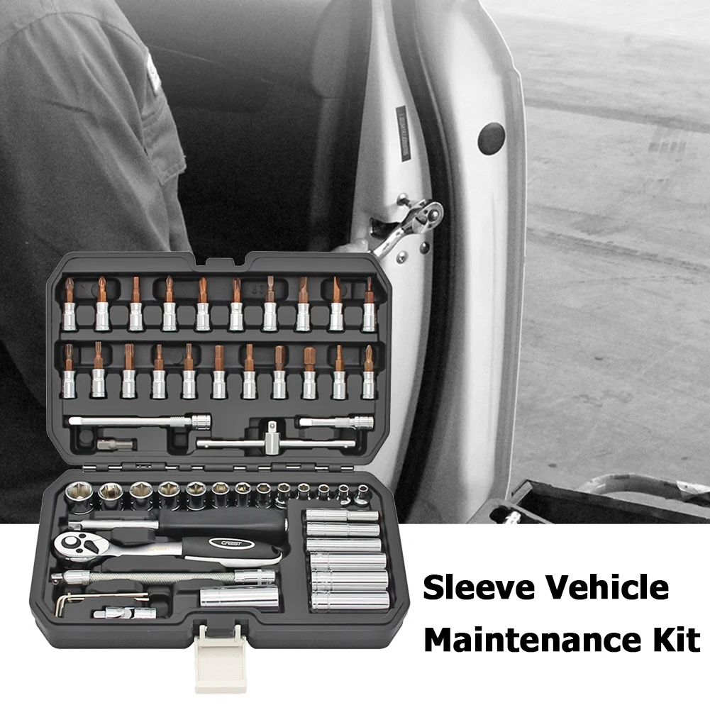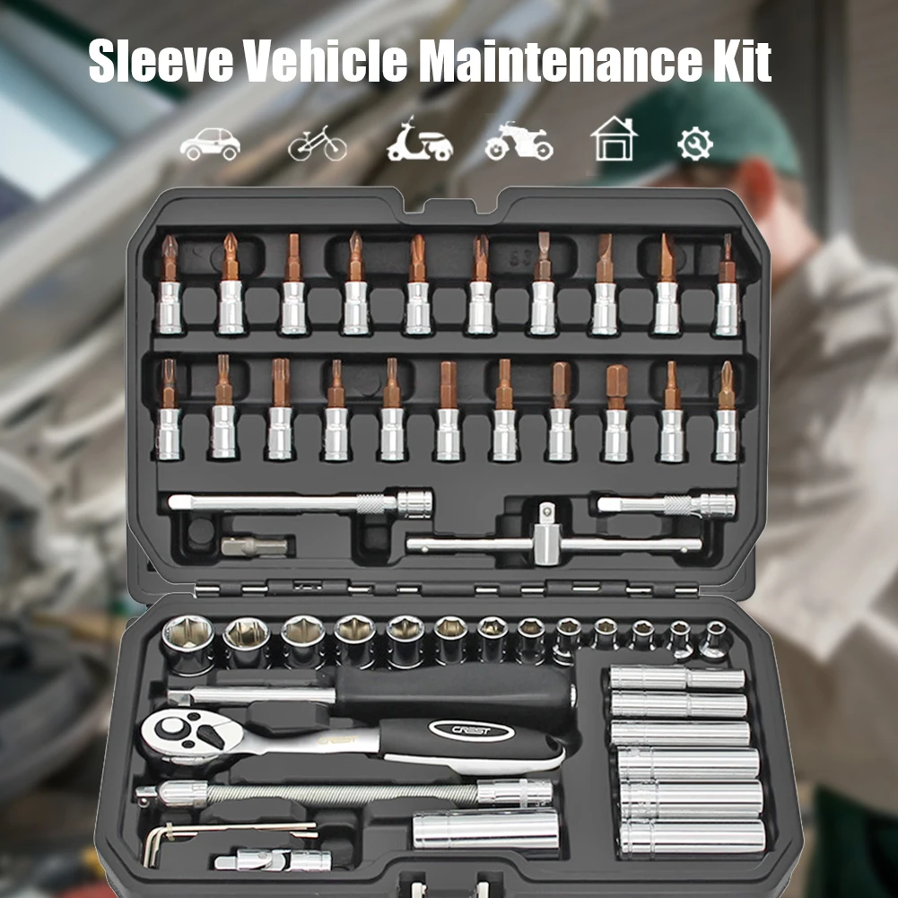 [relateproductdetail/] 53pcs Multi-functional Ratchet Wrench Set Professional Mechanic Auto Car Repair Tools Combination Kit with Carry Case