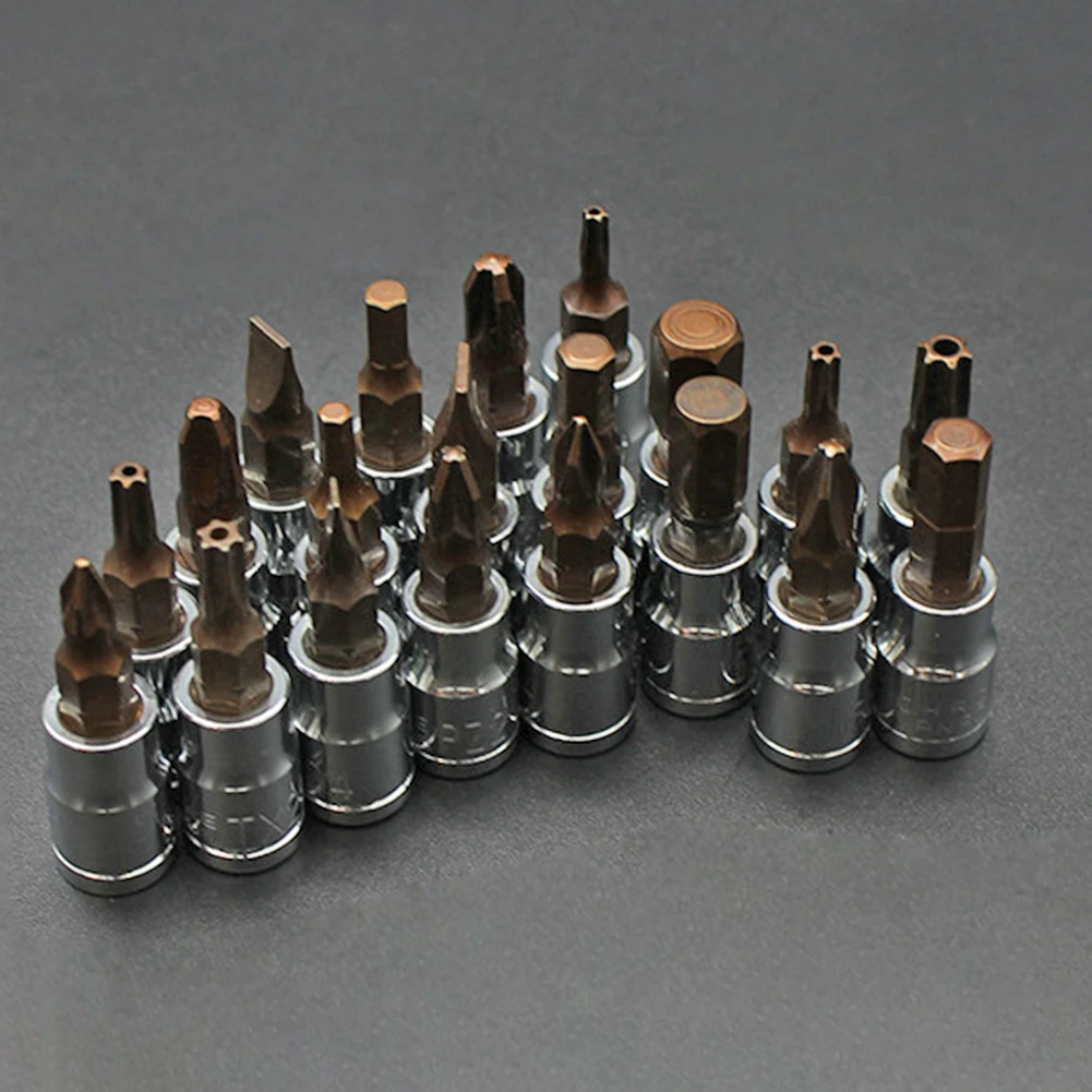 Feature: 1. The screwdriver handle can meet the batch head (the crossed T-shaped plum socket head hexagonal extension rod universal joint can receive the bending rod) 2. The socket is made of high-quality chrome-vanadium steel 50 BV30 cold-pressed and has a torque 50% higher than that of carbon steel. It uses a low-quality smooth surface treatment and has a good anti-rust effect. The batch head adopts CR-V material, which has higher hardness and toughness. 3. Quickly drop the ratchet wrench (positive and negative adjustable), the button quick release function ensures that the THT socket is safely locked during use, but also allows easy removal or quick replacement of the socket EVEV with greasy or oily fingers. Our high-quality 45-tooth ratchet can increase the running speed. It is an ideal set of tools commonly used to set small screws and nuts in air conditioners, valve seat nuts, tire fenders, car door locks, and households (basically included). Specification: Note: