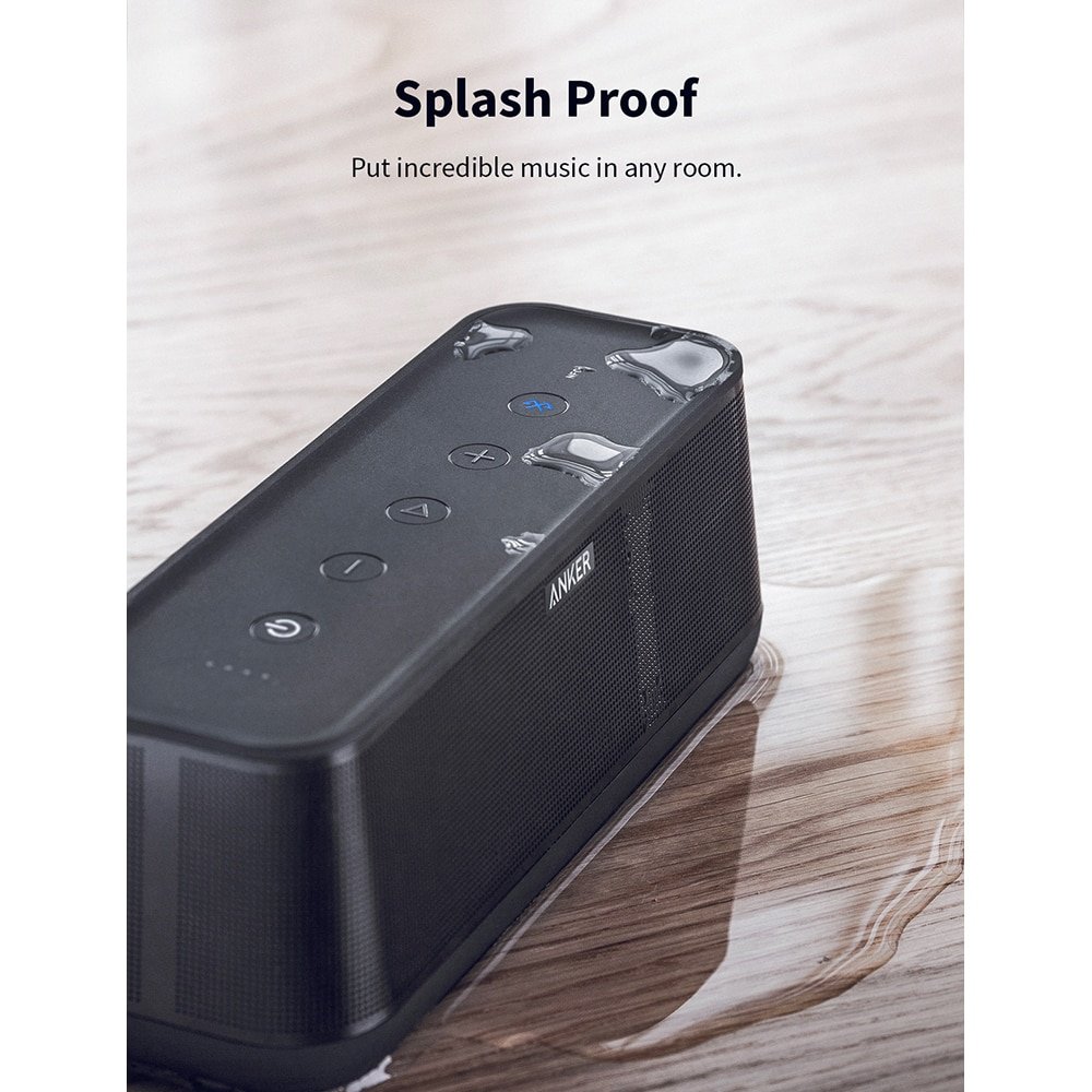 IPX4 rating means the SoundCore Pro+ is water-resistant. Splashes won’t stop the music, so start the pool party, or get in the great outdoors.