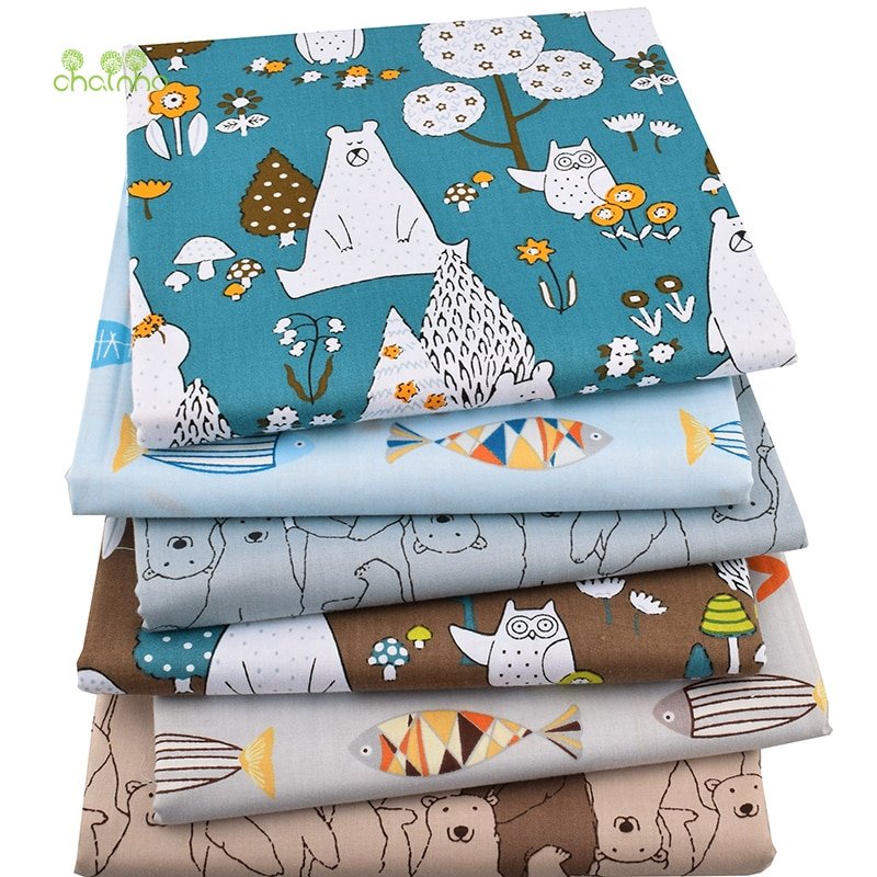 Chainho,6pcs/lot,New Bears&Fishes,Twill Cotton Fabric,Patchwork Cloth,DIY Sewing Quilting Fat Quarters Material For Baby&Child
