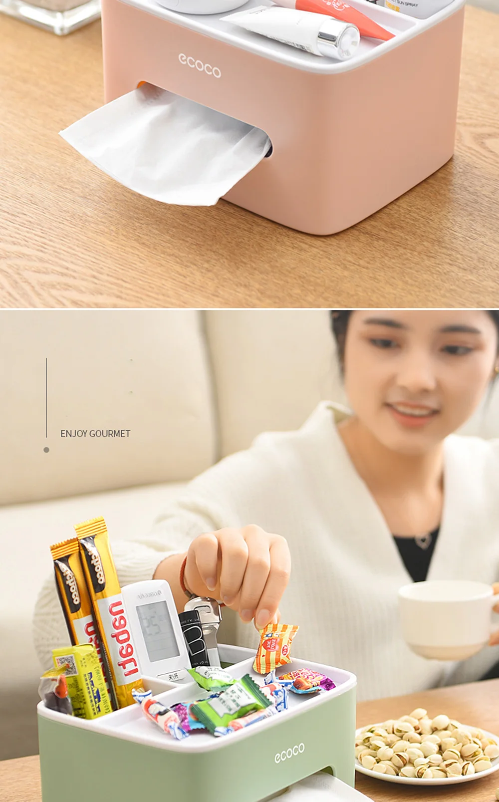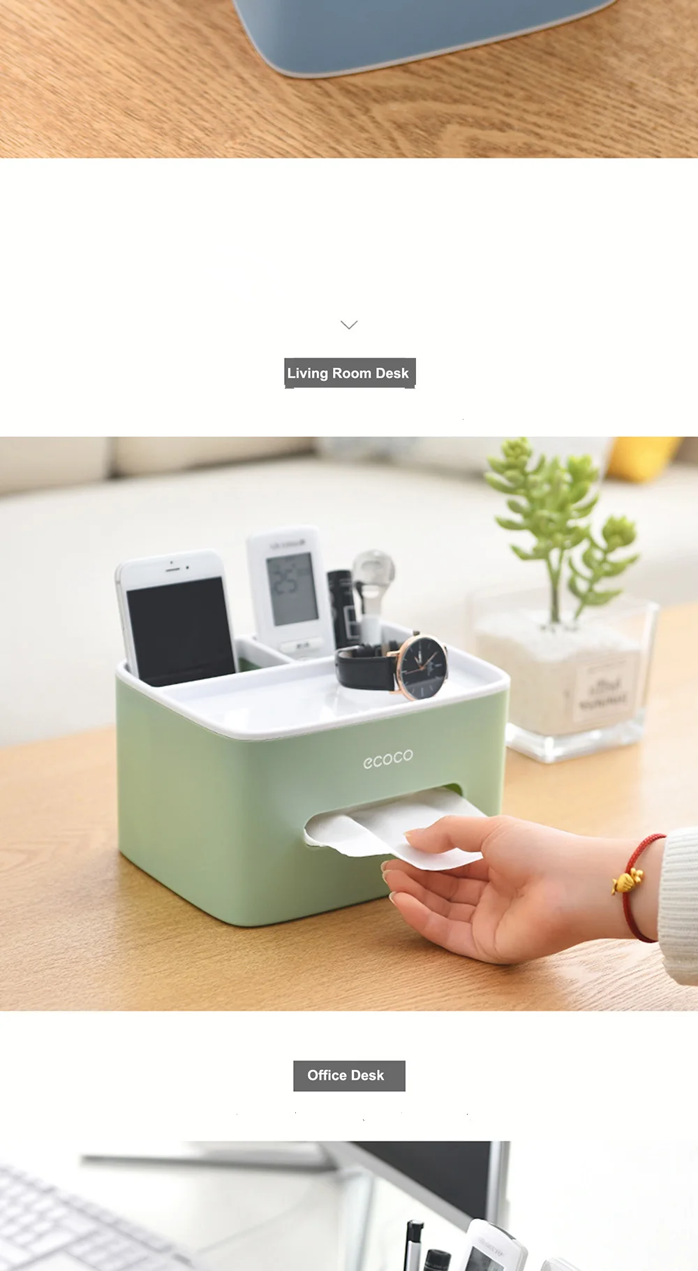 1.M ulti-functional storsge box with paper tissue can organize remote control, cosmetic,mobile phone,watch etc.