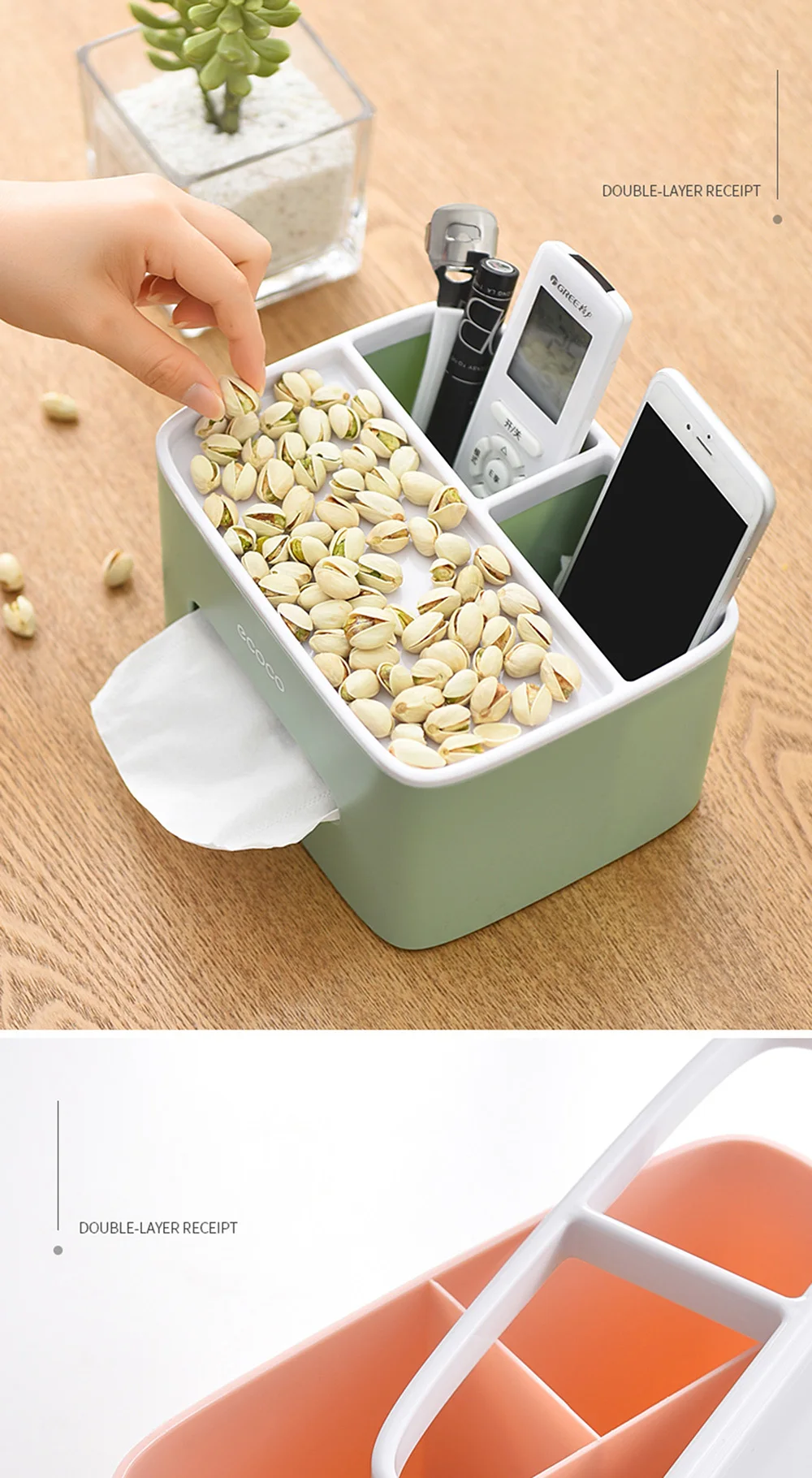 Home office storage Desk Storage Box Multi-functional Remote Control Case Cosmetic Organizer Holder suction paper tissue box